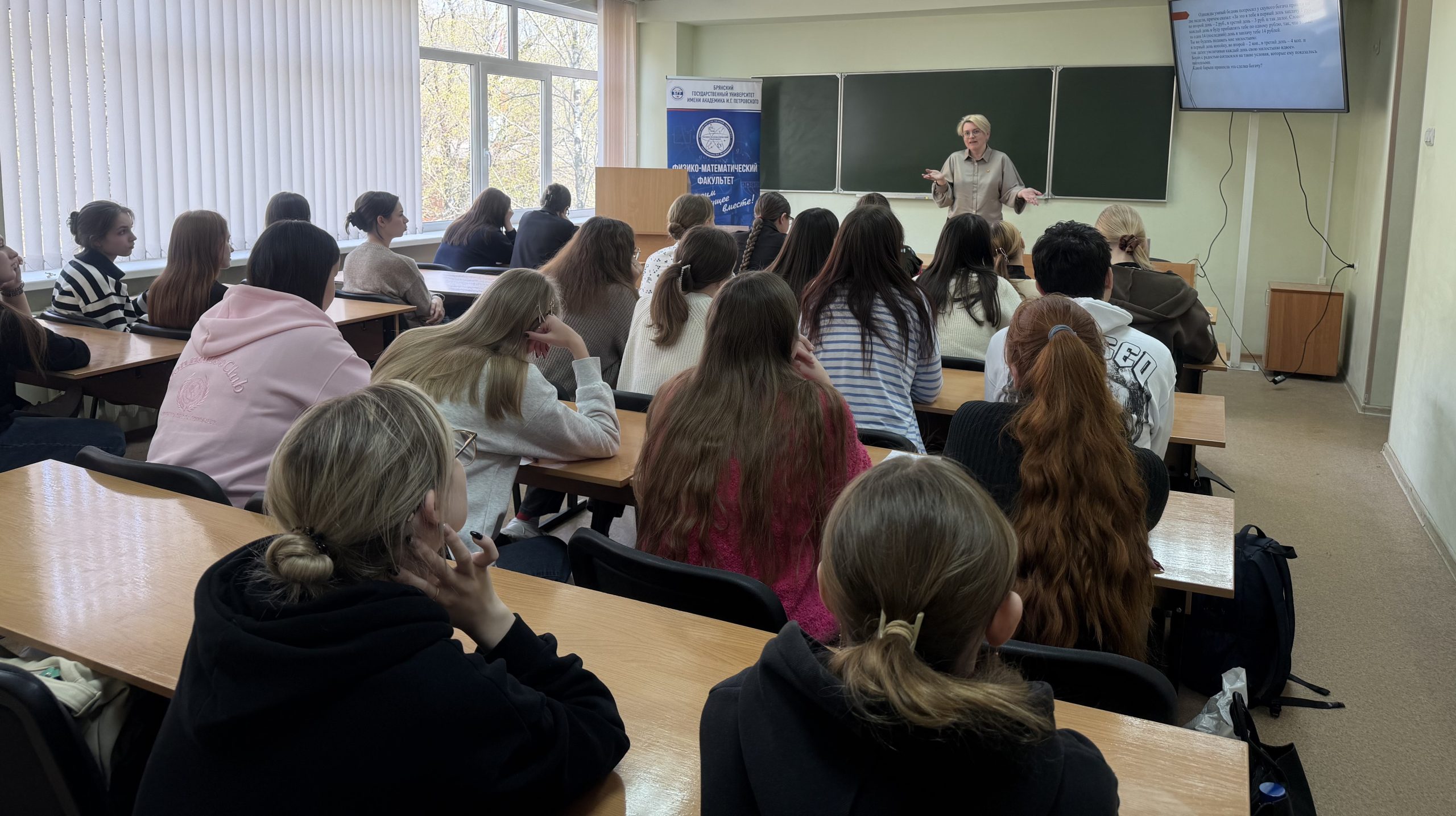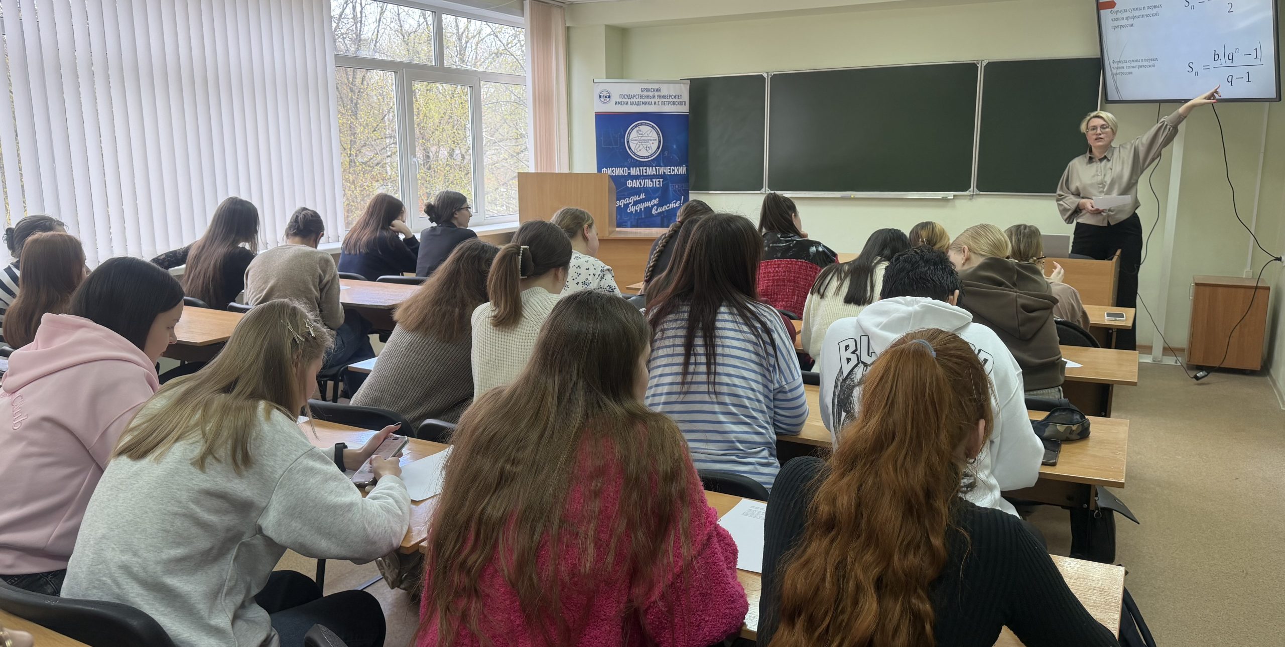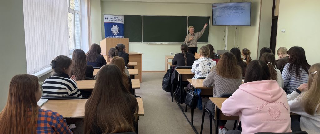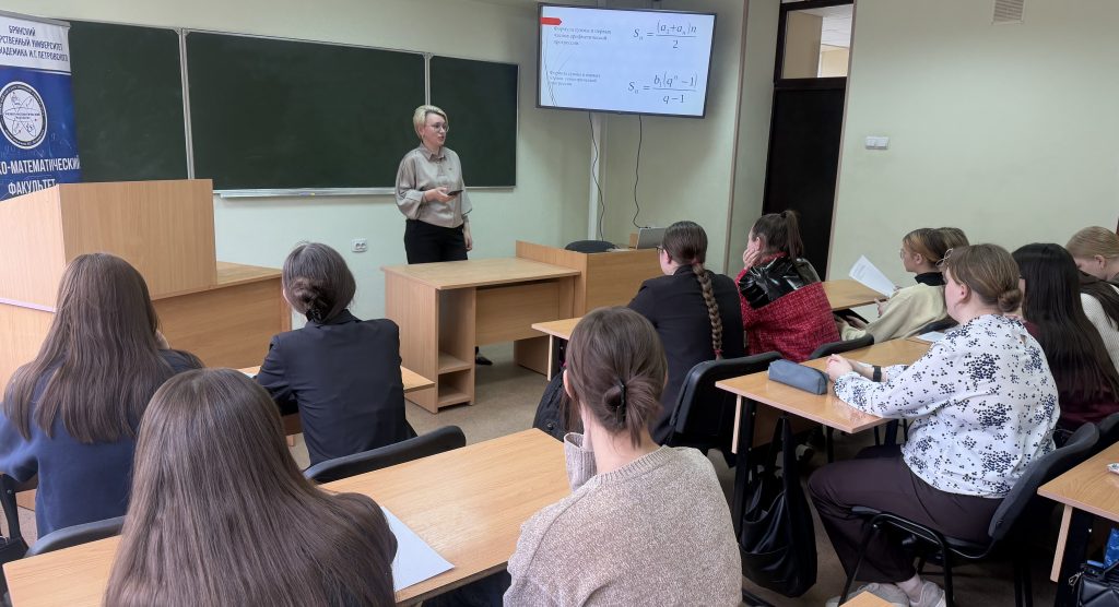 28 апреля в рамках Десятилетия науки и технологий и программы мероприятий Дней науки в БГУ на площадке нашего факультета в формате мастер-класса «Погружение в мир прогрессий» состоялась встреча преподавателей кафедры математического анализа, алгебры и геометрии и обучающихся 3 курса направления подготовки «Педагогическое образование (Математика)» с учителем математики Навлинской средней общеобразовательной школе №2 имени Т.Н. Степановой, участницей муниципального этапа Всероссийского конкурса профессионального мастерства «Учитель года России – 2026», выпускницей нашего факультета Н.Л. Скумай.